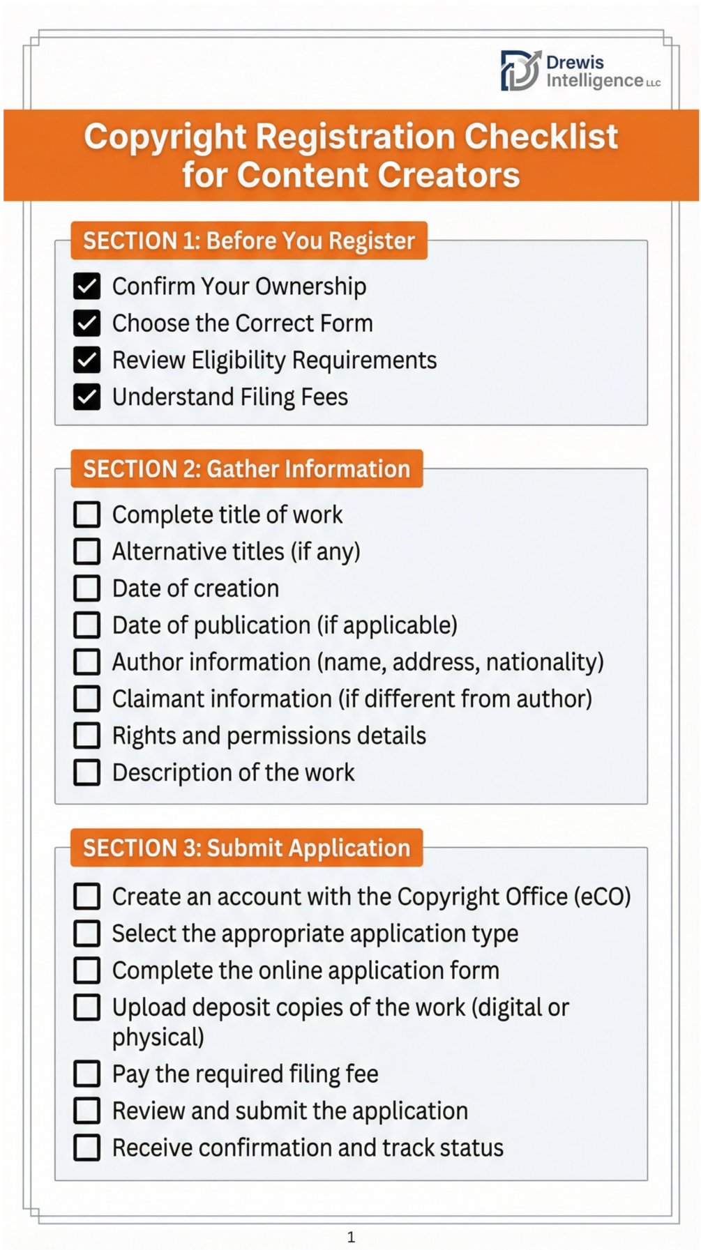 • Copyright Registration Checklist for Content Creators (9 pages)