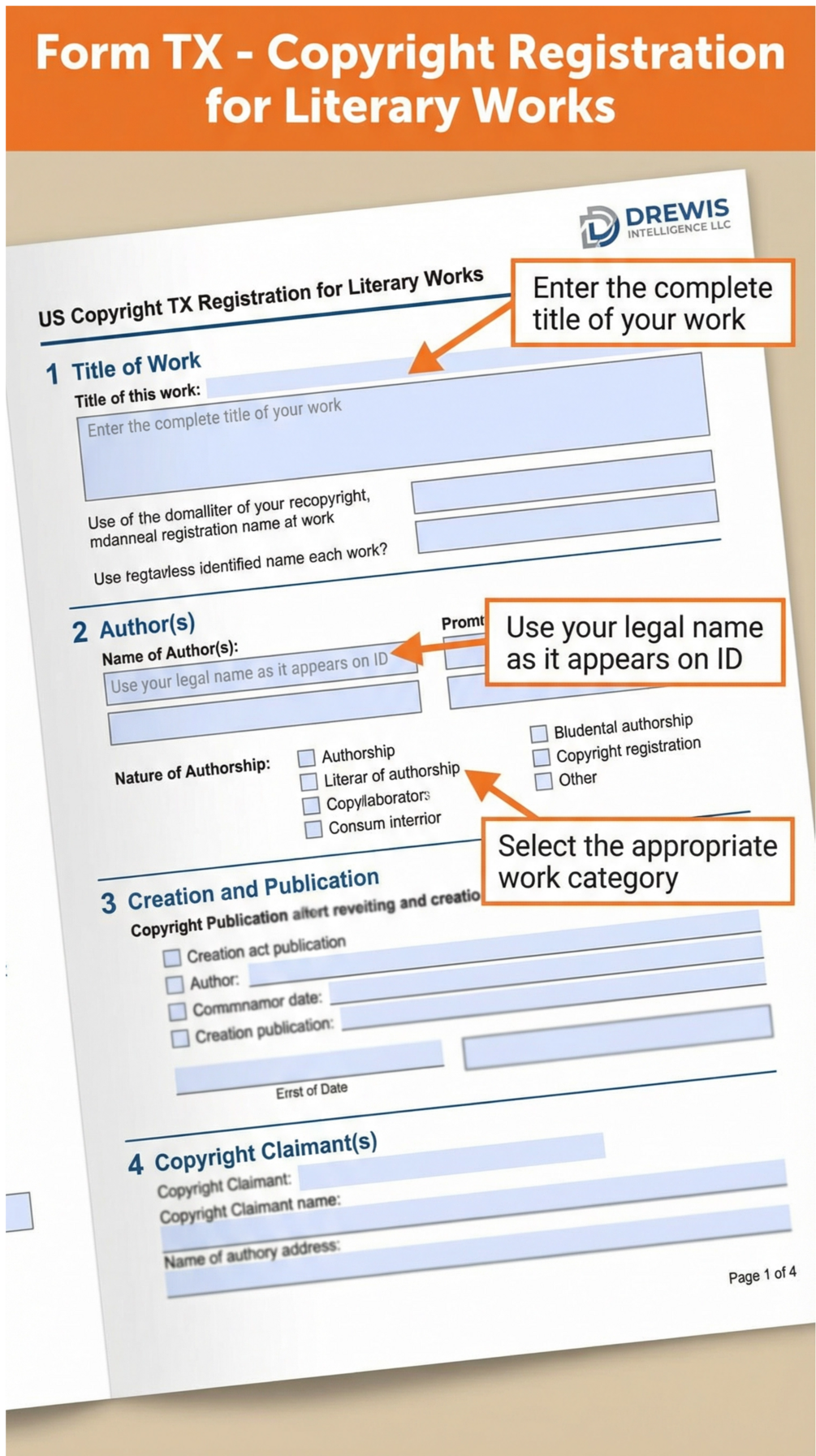 • Official US Copyright Form TX (blank + annotated version with instructions)