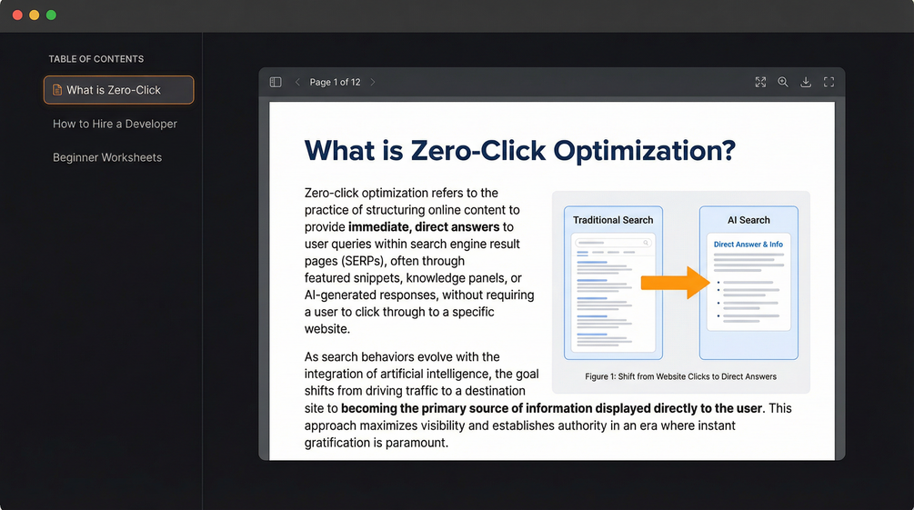 - **Foundational Knowledge**: Includes the essential What is Zero-Click Optimization.pdf guide, providing a clear, concise explanation of this critical new marketing paradigm.